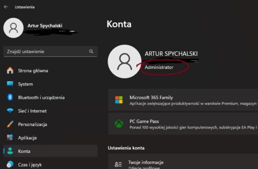 zobaczysz, czy jest to <b>„Administrator”</b> lub tylko <b>„Użytkownik”</b>.